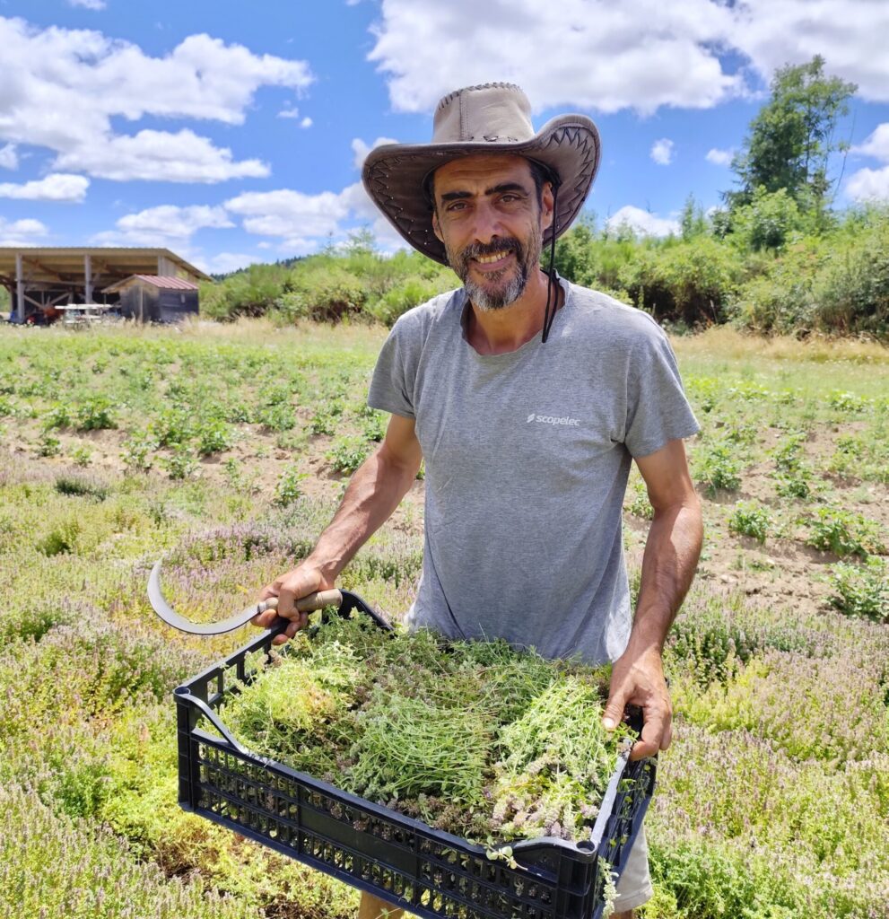 Nous cultivons sur 4000 m2 des espèces dont la récolte n’est pas mécanisable et récoltons leurs fleurs concentrées en produits actifs.
